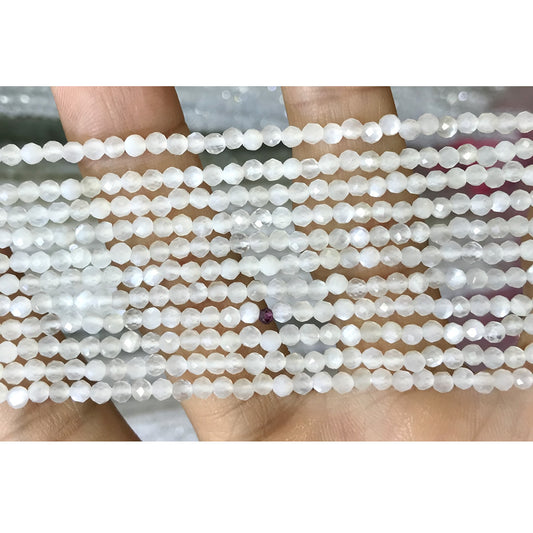CTG200 White Moonstone Beads Faceted Round 3mm 15" Strand