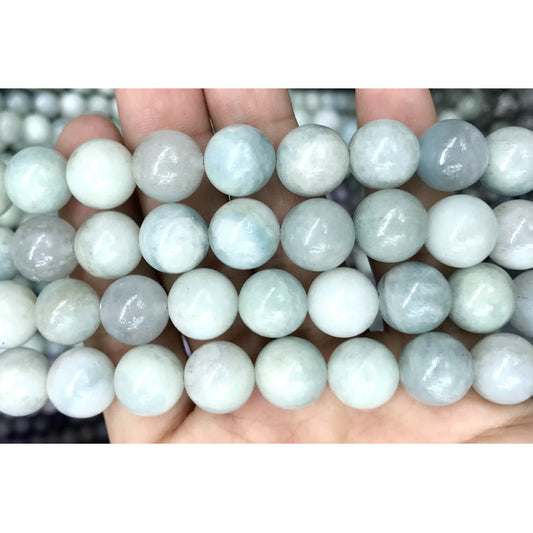 CAQ12 Aquamarine Gemstone Beads Smooth Round 10mm 15" Strand