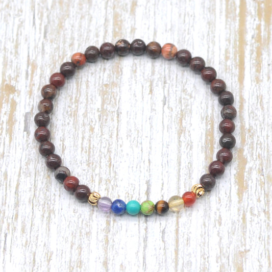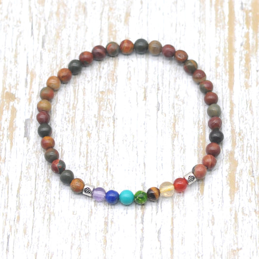 CGB927 Blood Jasper With 7 Chakra Stretch Bracelet Round 4mm