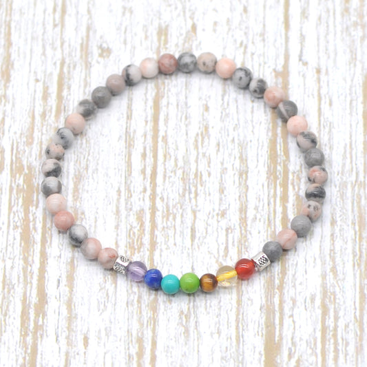 CGB919 Pink Zebra Jasper With 7 Chakra Stretch Bracelet Round 4mm