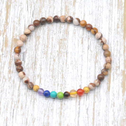 CGB920 Australian Zebra Jasper With 7 Chakra Stretch Bracelet Round 4mm