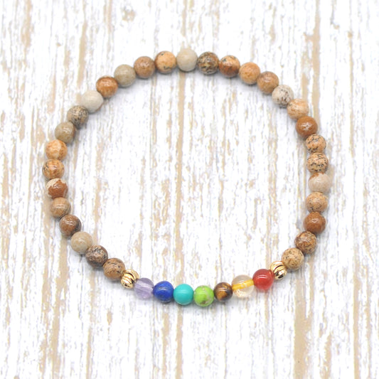 CGB921 Picture Jasper With 7 Chakra Stretch Bracelet Round 4mm