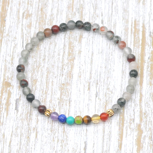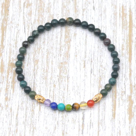 CGB928 Indian Bloodstone With 7 Chakra Stretch Bracelet Round 4mm