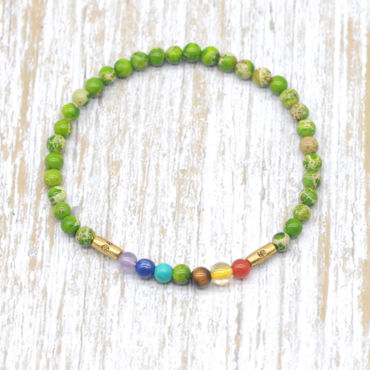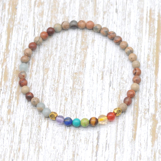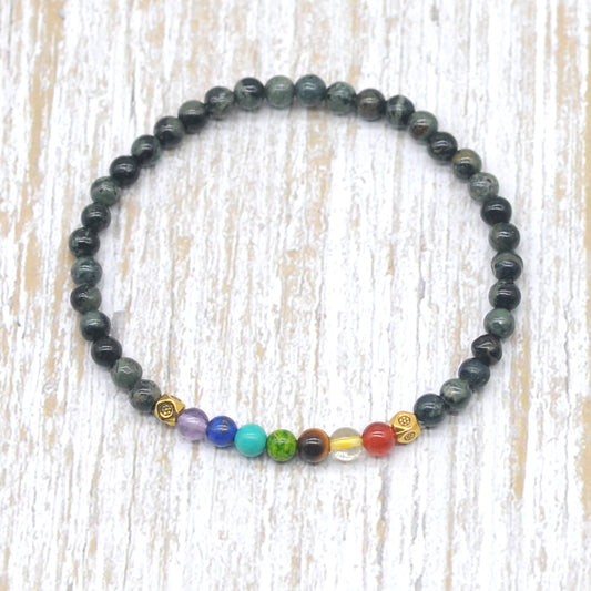 CGB931 Serpentine Jasper With 7 Chakra Stretch Bracelet Round 4mm