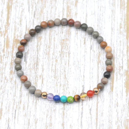 CGB930 Polychrome Jasper With 7 Chakra Stretch Bracelet Round 4mm