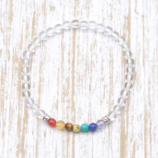 CGB936 Clear Quartz With 7 Chakra Stretch Bracelet Round 4mm