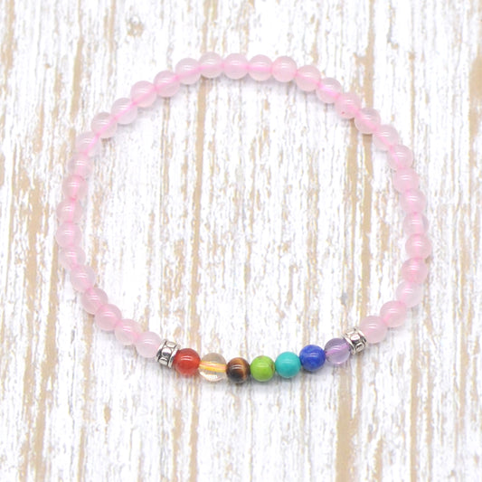 CGB937 Rose Quartz With 7 Chakra Stretch Bracelet Round 4mm