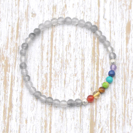 CGB938 Cloudy Quartz With 7 Chakra Stretch Bracelet Round 4mm