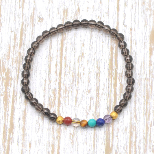 CGB940 Smoky Quartz With 7 Chakra Stretch Bracelet Round 4mm
