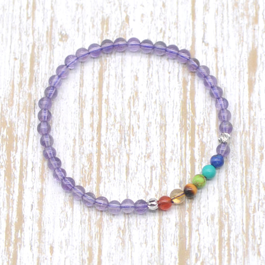 CGB941 Light Amethyst With 7 Chakra Stretch Bracelet Round 4mm