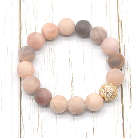 CGB251 Sunstone With Zircon Ball Stretch Bracelet Matte Round 10mm 12mm