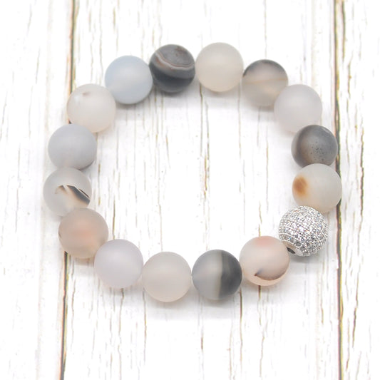 CGB253 Montana Agate With Zircon Ball Stretch Bracelet Matte Round 10mm 12mm