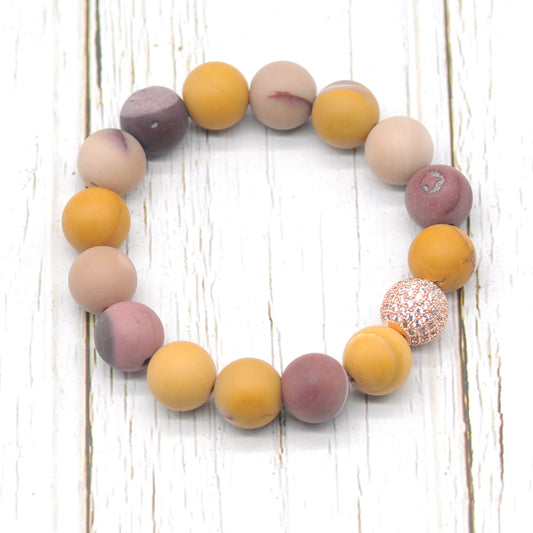 CGB257 Mookaite Gemstone With Zircon Ball Stretch Bracelet Matte Round 10mm 12mm