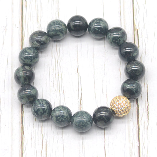 CGB291 Kambaba Jasper With Zircon Ball Stretch Bracelet Round 10mm 12mm