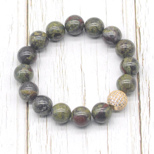 CGB292 Dragon Blood Jasper With Zircon Ball Stretch Bracelet Round 10mm 12mm