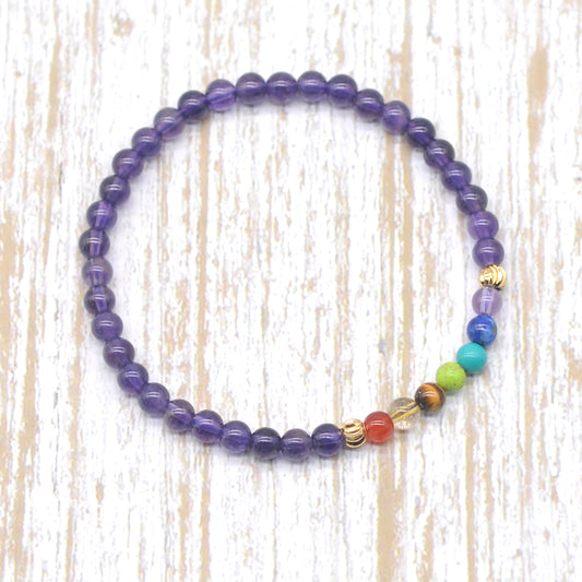 CGB942 Dark Amethyst With 7 Chakra Stretch Bracelet Round 4mm