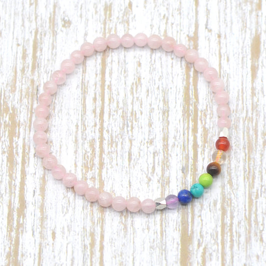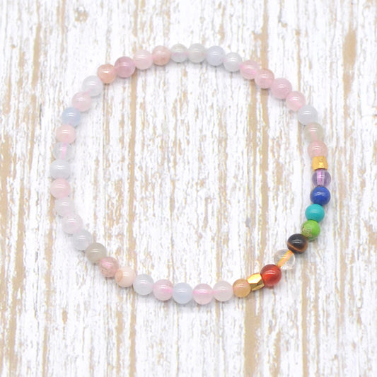CGB944 Morganite With 7 Chakra Beaded Stretch Bracelet Round 4mm