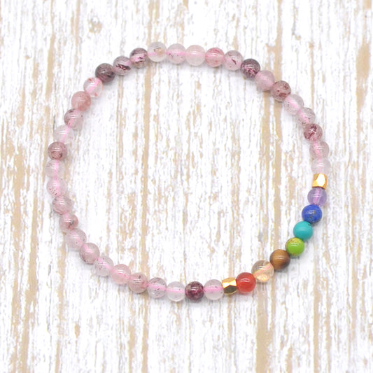 CGB945 Strawberry Quartz With 7 Chakra Stretch Bracelet Round 4mm