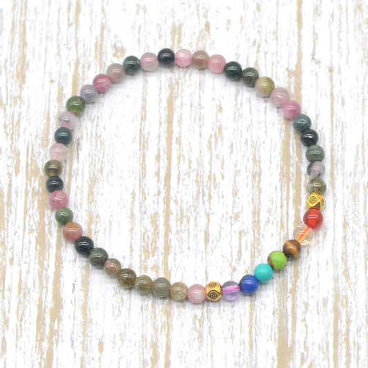 CGB946 Tourmaline With 7 Chakra Beaded Stretch Bracelet Round 4mm
