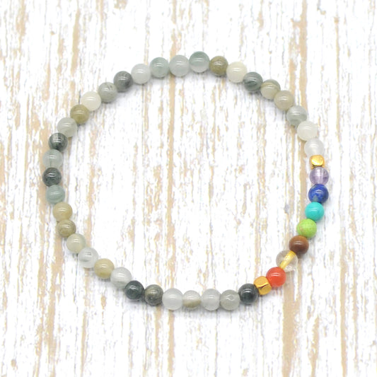 CGB947 Seaweed Quartz With 7 Chakra Stretch Bracelet Round 4mm