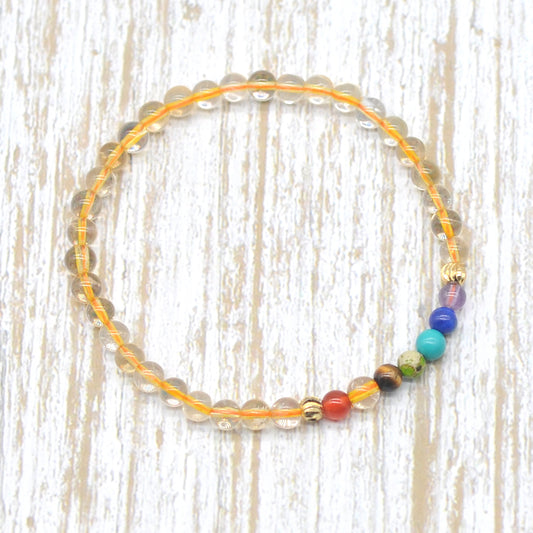 CGB948 Citrine With 7 Chakra Beaded Stretch Bracelet Round 4mm