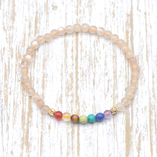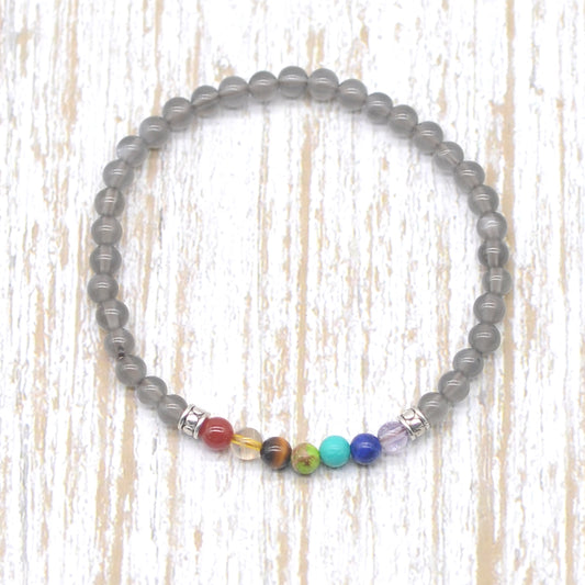 CGB954 Grey Moonstone With 7 Chakra Stretch Bracelet Round 4mm