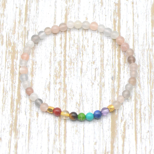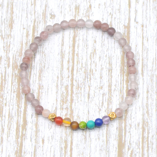 CGB953 Rainbow Moonstone With 7 Chakra Stretch Bracelet Round 4mm
