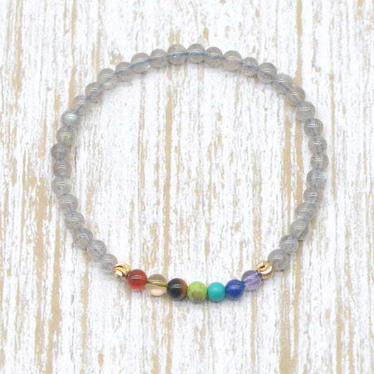 CGB955 Labradorite With 7 Chakra Stretch Bracelet Round 4mm