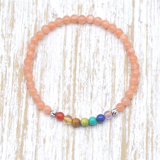 CGB956 Sunstone With 7 Chakra Beaded Stretch Bracelet Round 4mm