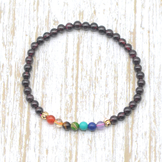 CGB958 Garnet With 7 Chakra Beaded Stretch Bracelet Round 4mm