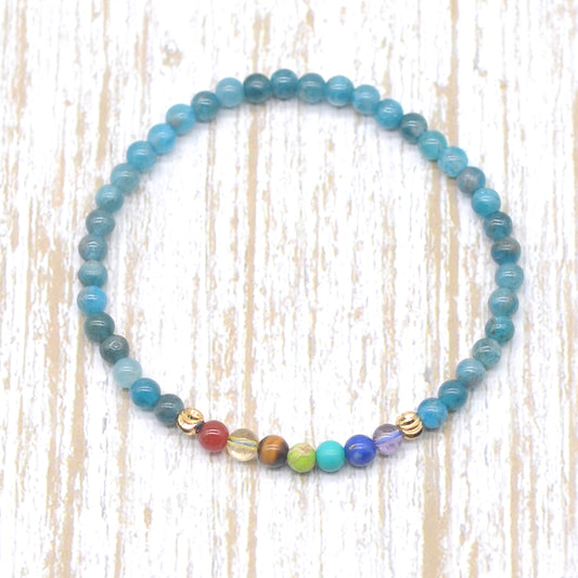 CGB959 Apatite With 7 Chakra Beaded Stretch Bracelet Round 4mm