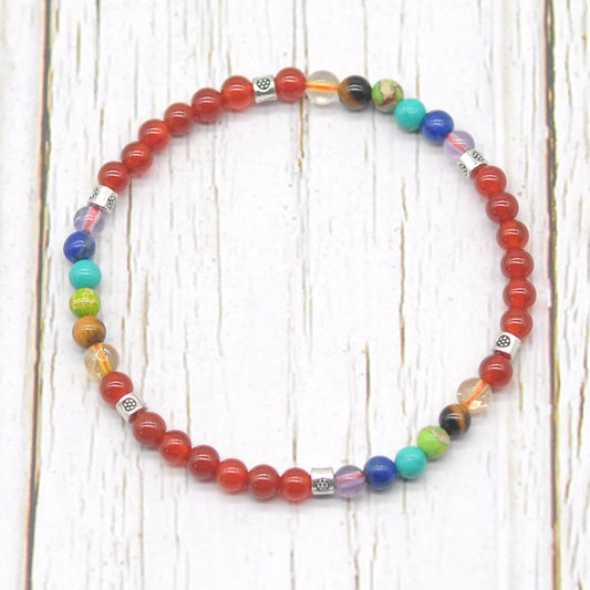 CGB966 Red Agate With 7 Chakra Stretch Bracelet Round 4mm