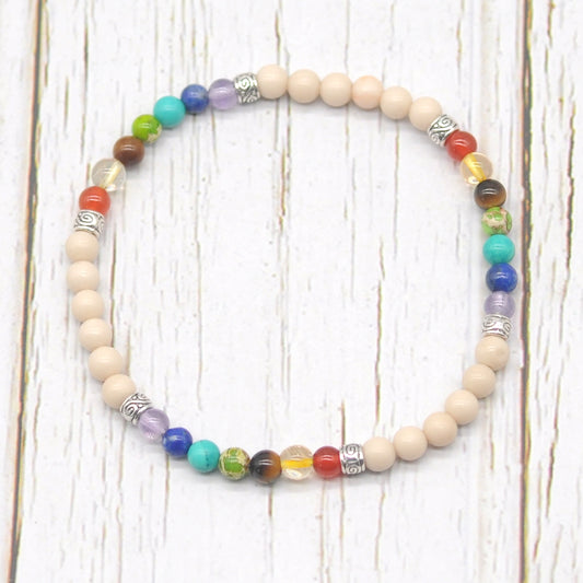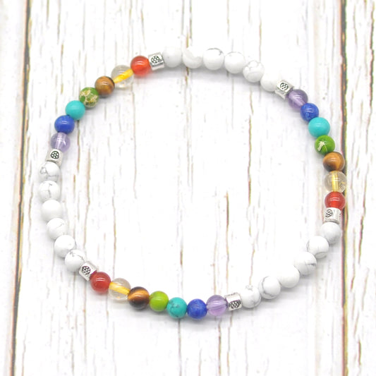 CGB967 White Howlite With 7 Chakra Stretch Bracelet Round 4mm