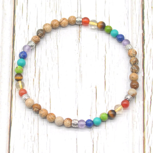 CGB969 Picture Jasper With 7 Chakra Stretch Bracelet Round 4mm