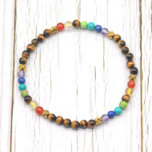 CGB970 Yellow Tiger Eye With 7 Chakra Stretch Bracelet Round 4mm
