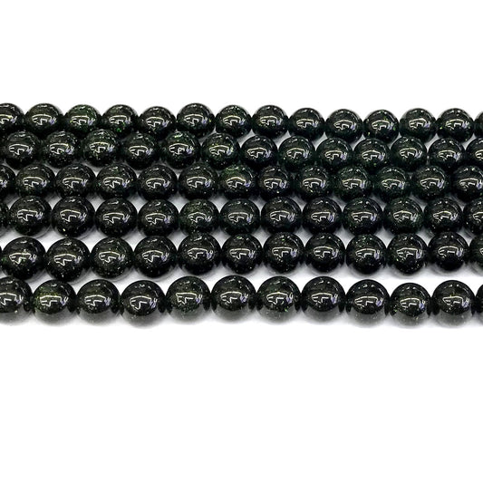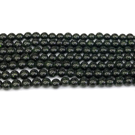 CGS10 Green Goldstone Beads Smooth Round 8mm 15" Strand