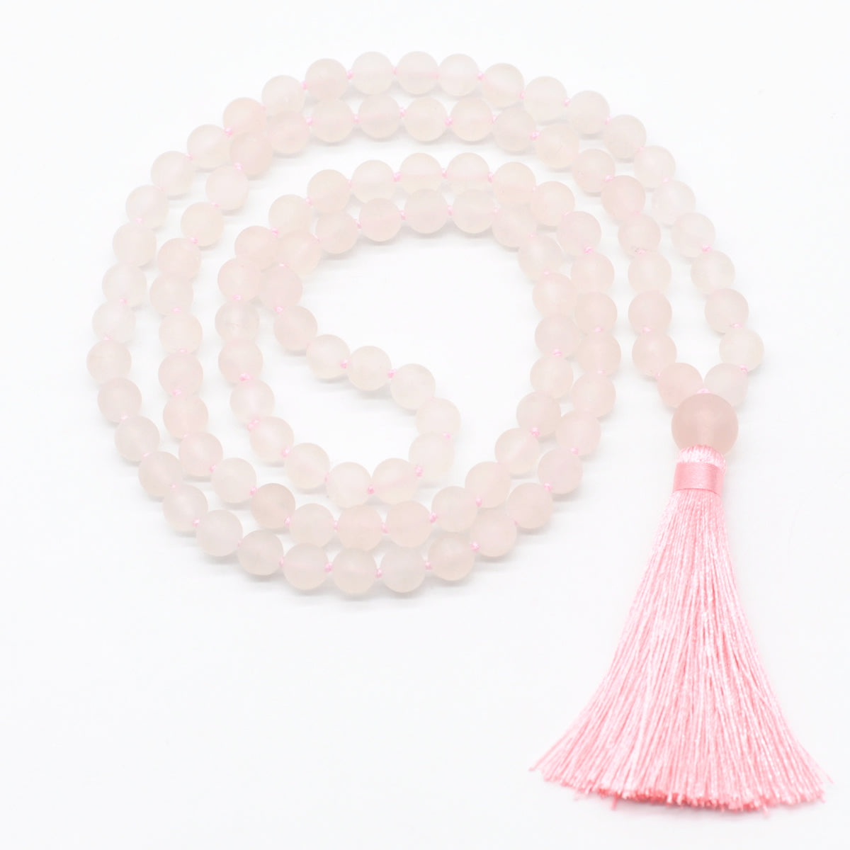 GMN01 Hand-Knotted Matte Rose Quartz 108 Beads Mala Necklace