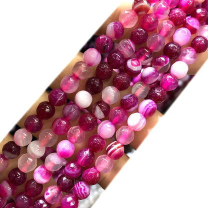 CAG1046 Banded Agate Beads Faceted Round 6mm 15" Strand
