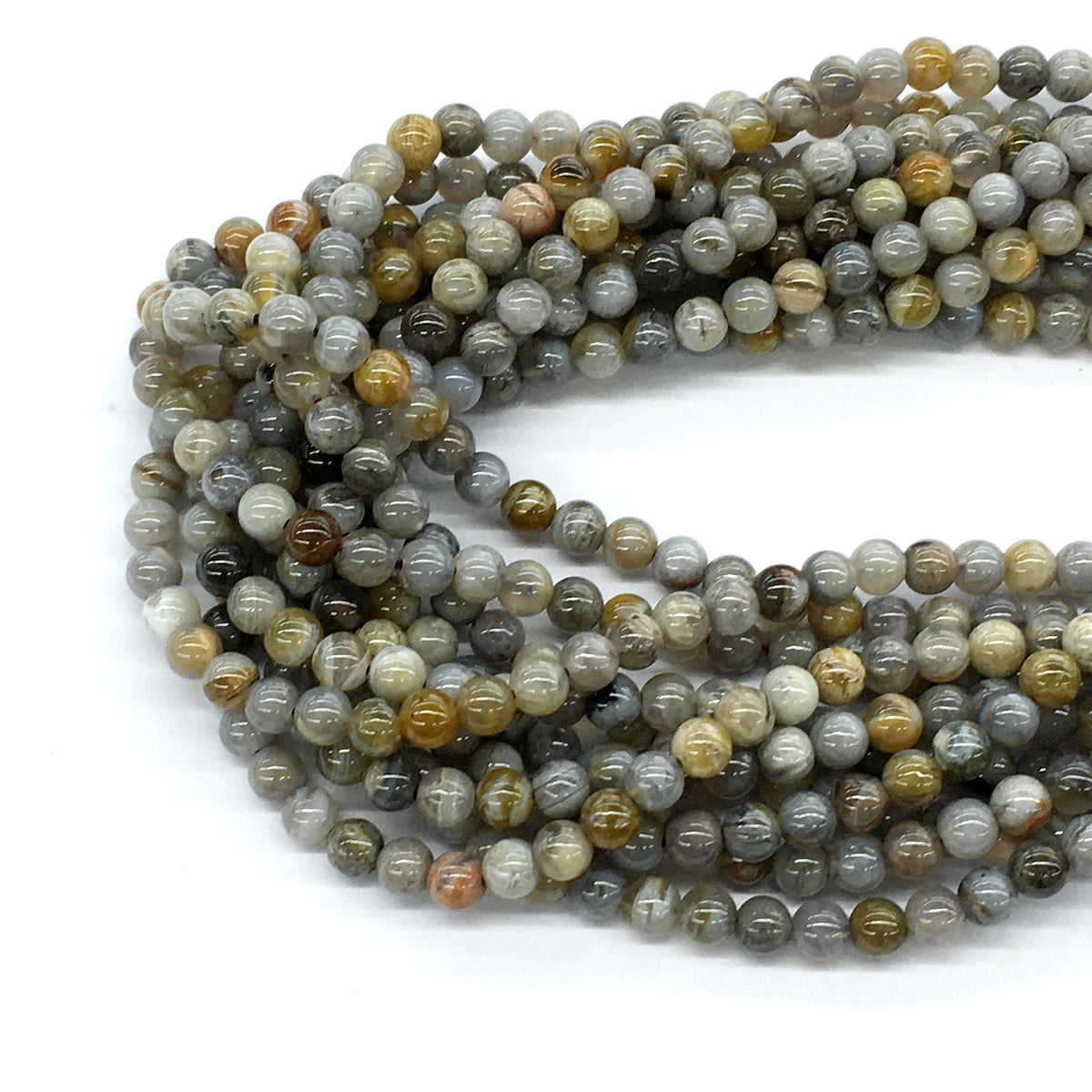 CAG126 Bamboo Leaf Agate Beads Smooth Round 4mm 15.5" Strand