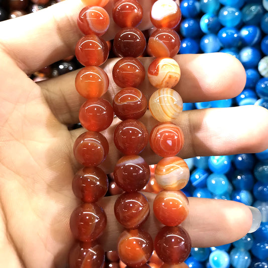 CAG982 Banded Agate Beads Smooth Round 8mm 15" Strand