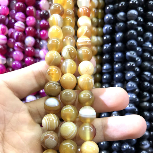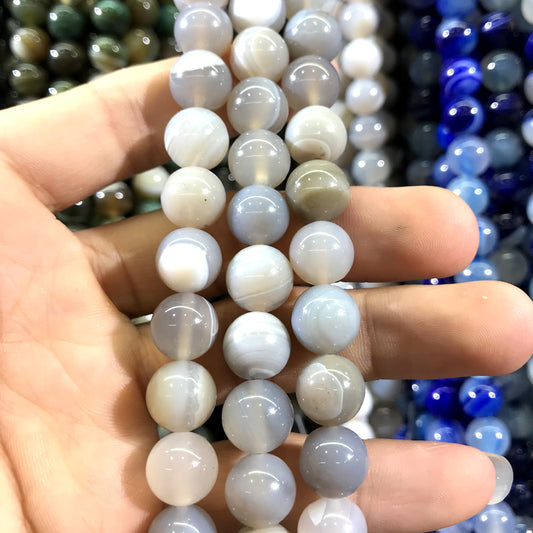 CAG968 Banded Agate Beads Smooth Round 10mm 15" Strand