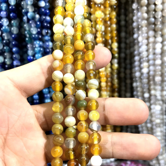 CAG961 Banded Agate Beads Smooth Round 6mm 15" Strand