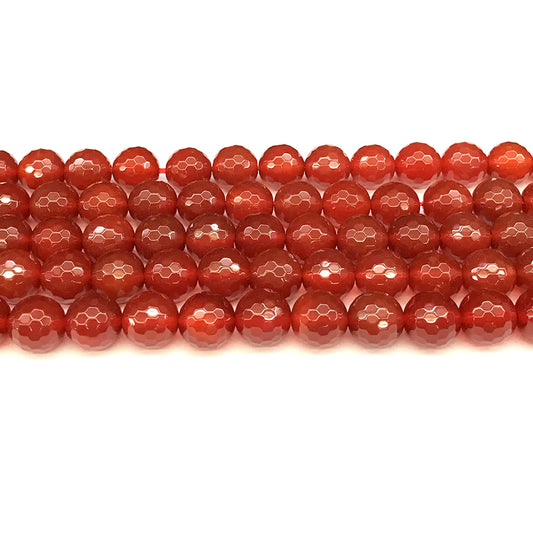 CAG1153 Red Agate Beads Faceted Round 10mm 15" Strand