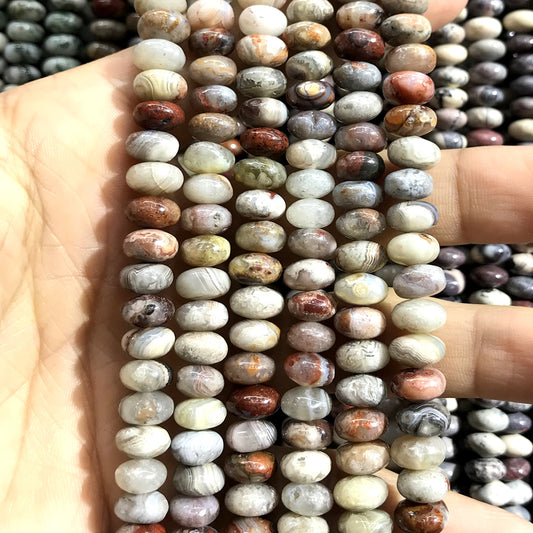 CRB277 Mexican Crazy Lace Agate Beads Smooth Rondelle 5x8mm 15" Strand