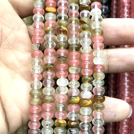 CRB200 Cherry Quartz Beads Smooth Rondelle 4x6mm 15" Strand