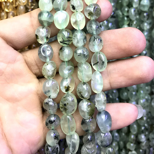 CNG34 Green Rutilated Quartz Beads Smooth Nugget 8x10mm 15" Strand