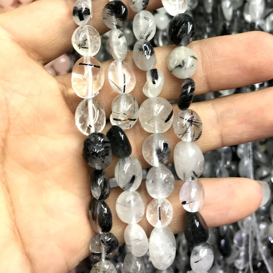 CNG35 Black Rutilated Quartz Beads Smooth Nugget 8x10mm 15" Strand