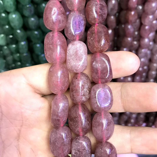CNG53 Strawberry Quartz Beads Smooth Nugget 8x10mm - 10x14mm 15" Strand