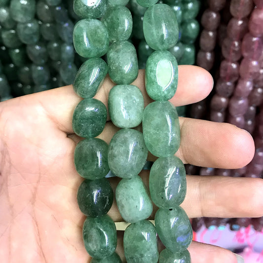 CNG54 Green Strawberry Quartz Beads Smooth Nugget 8x10mm - 10x14mm 15" Strand