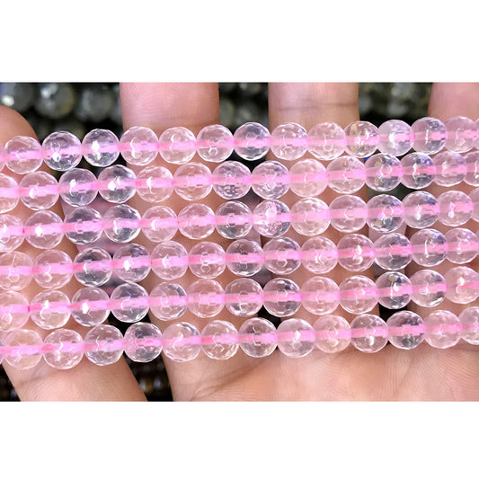 CQU266 Rose Quartz Beads Faceted Round 8mm 15.5" Strand